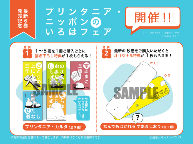 ☆彡既刊1~5巻+新刊6巻に特典が付く『プリンタニア・ニッポンのいろはフェア』も開催!
